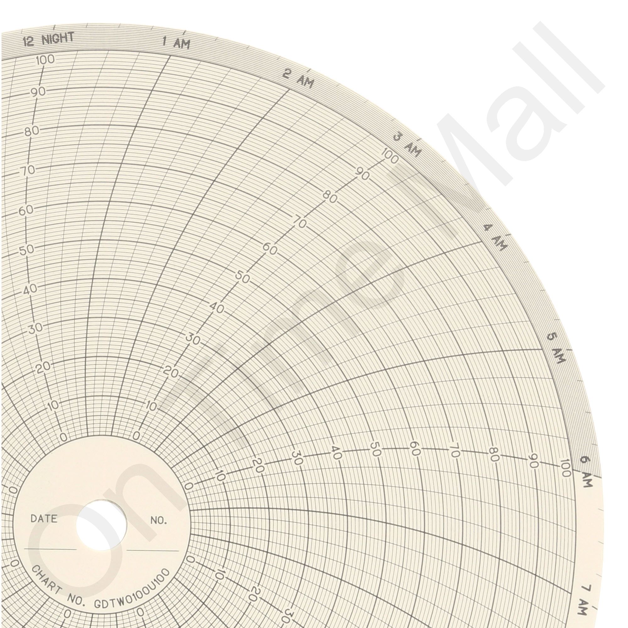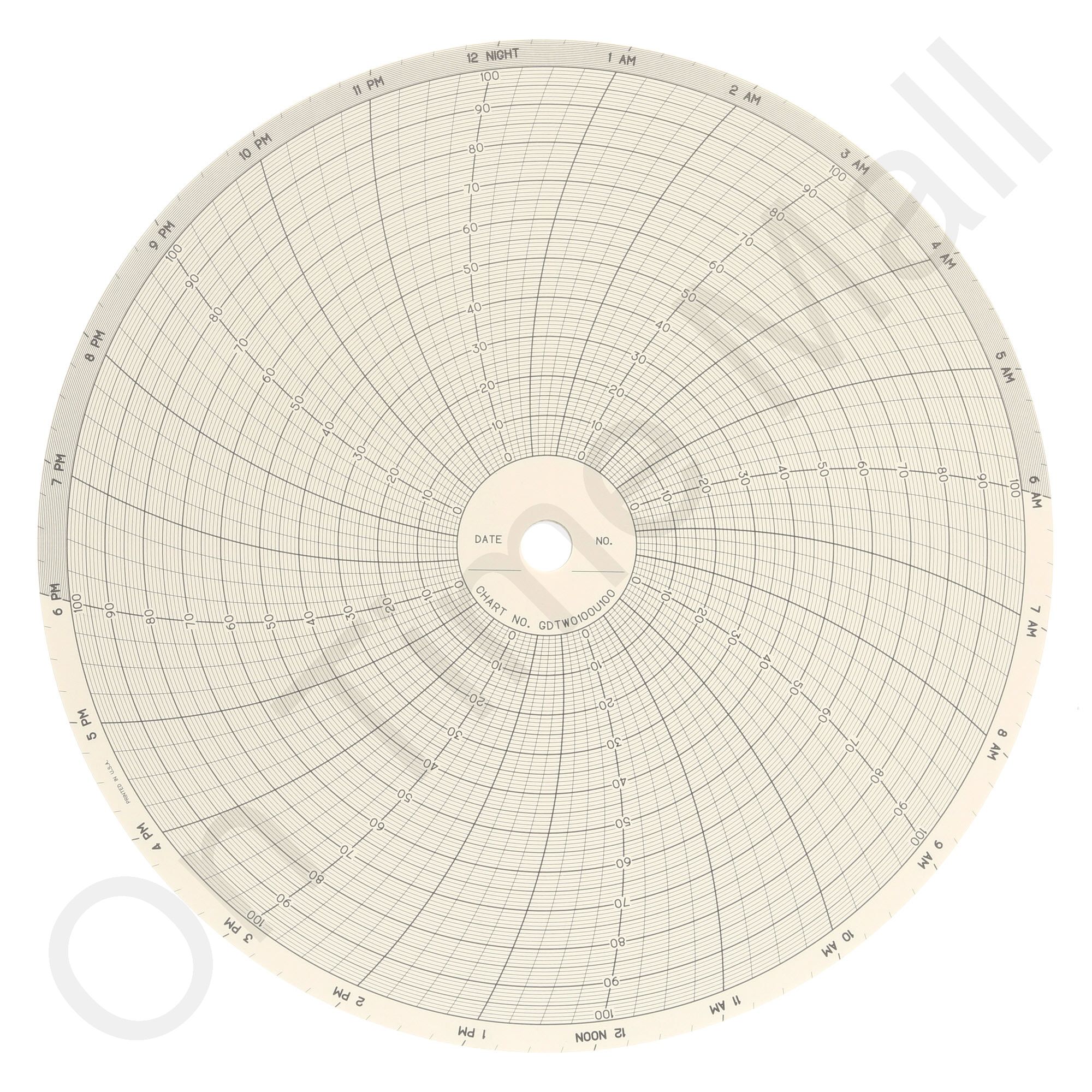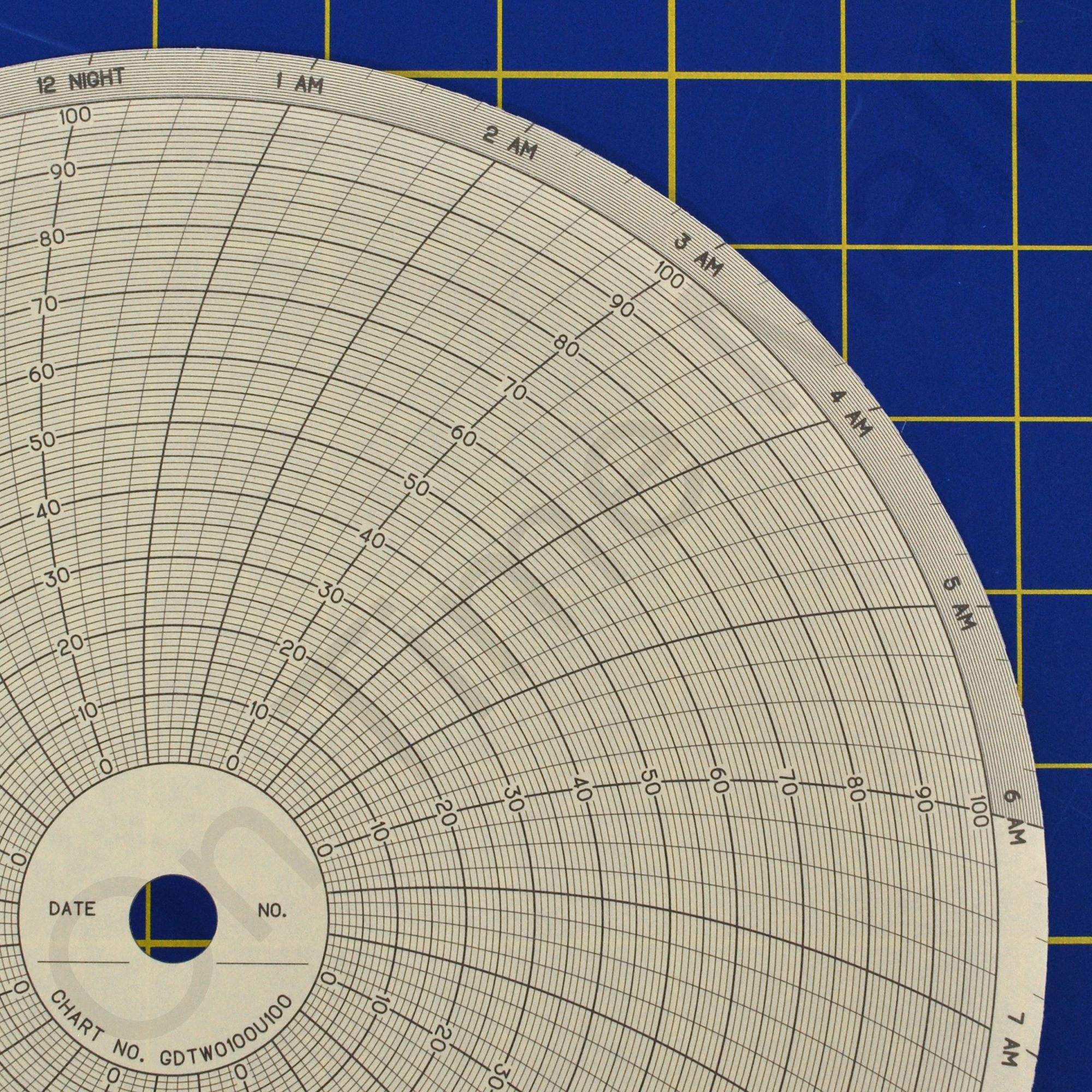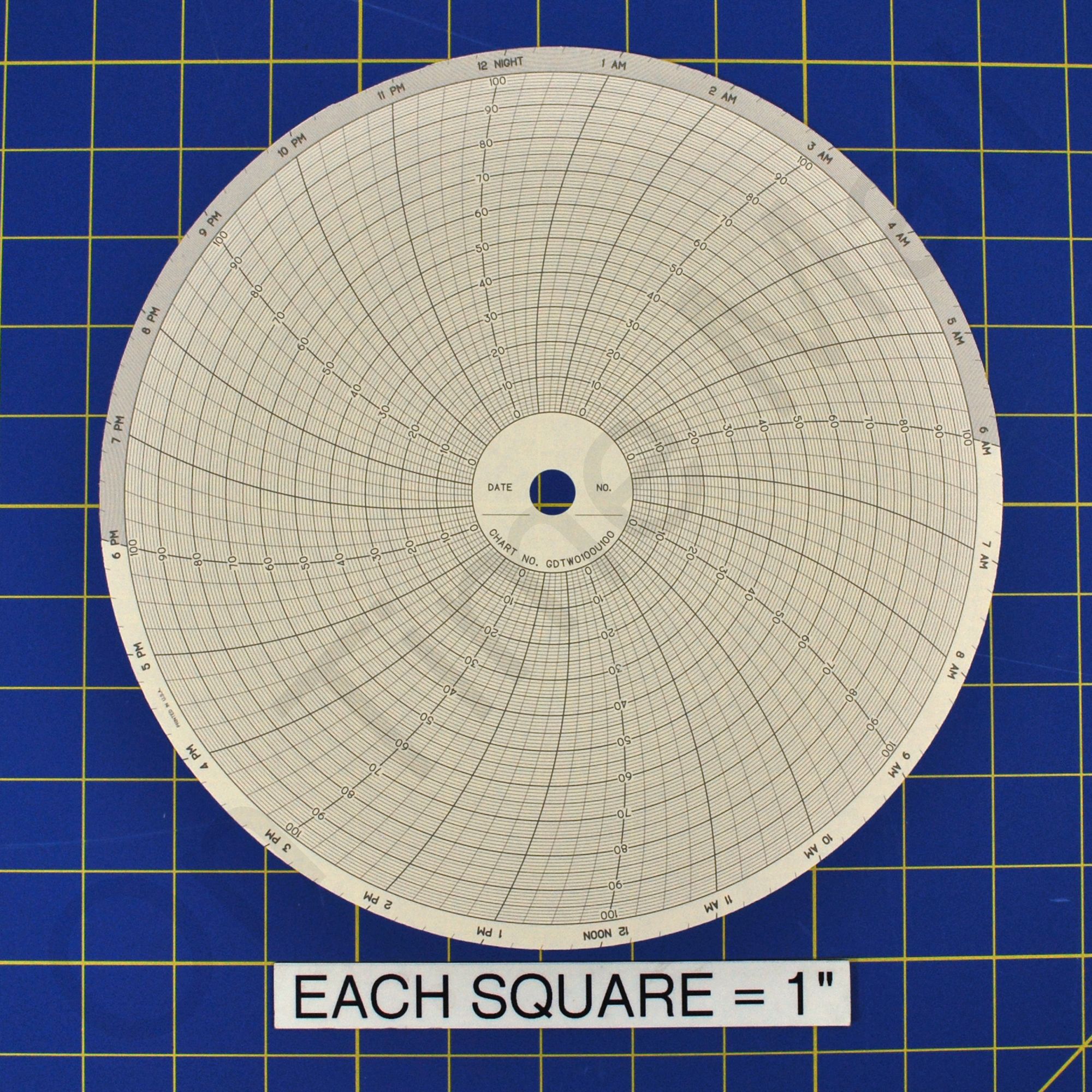 Chessell GDTW0100U100 Circular Charts. Replacement round circular charts for Chessell industrial chart recorder. Package contains 100 circular charts.