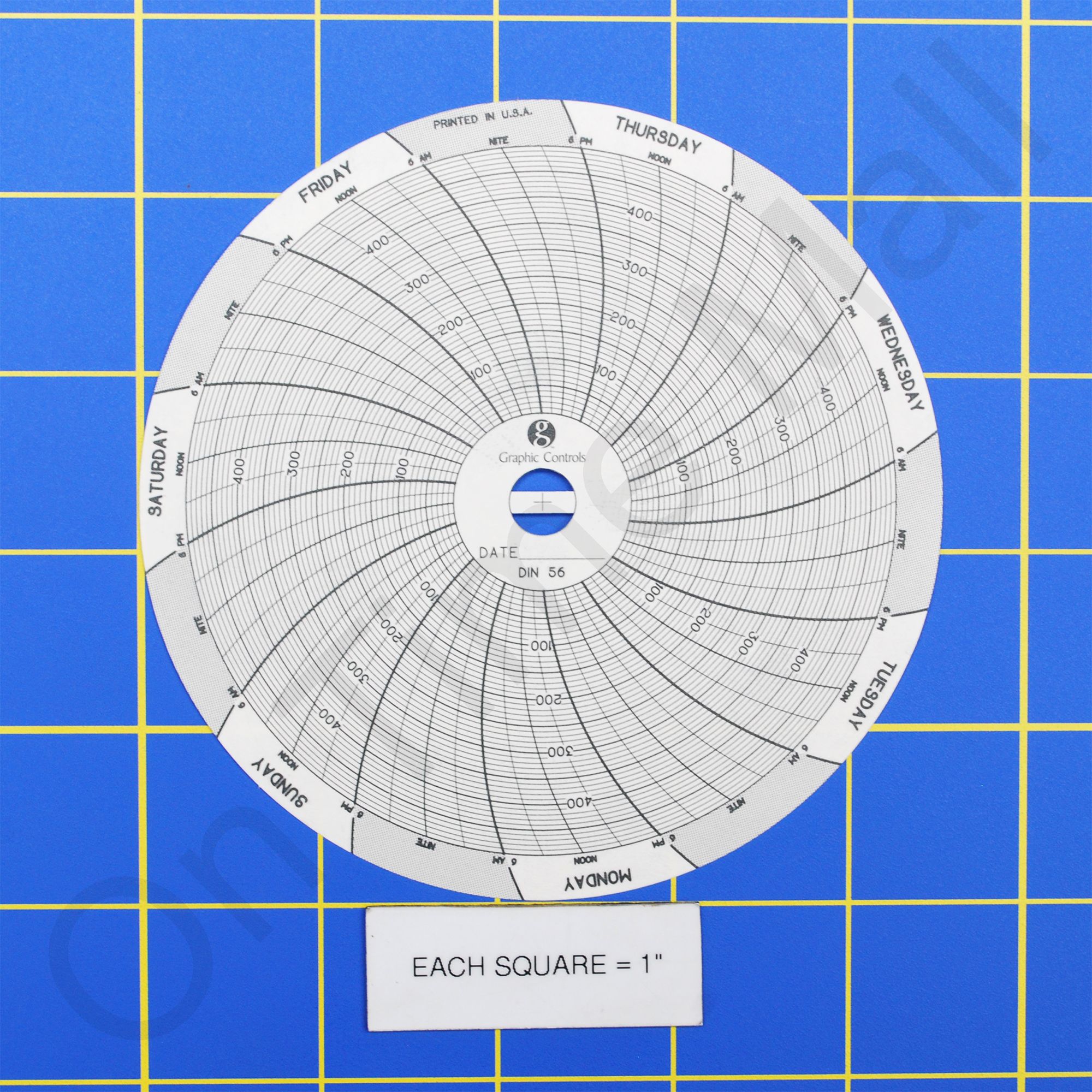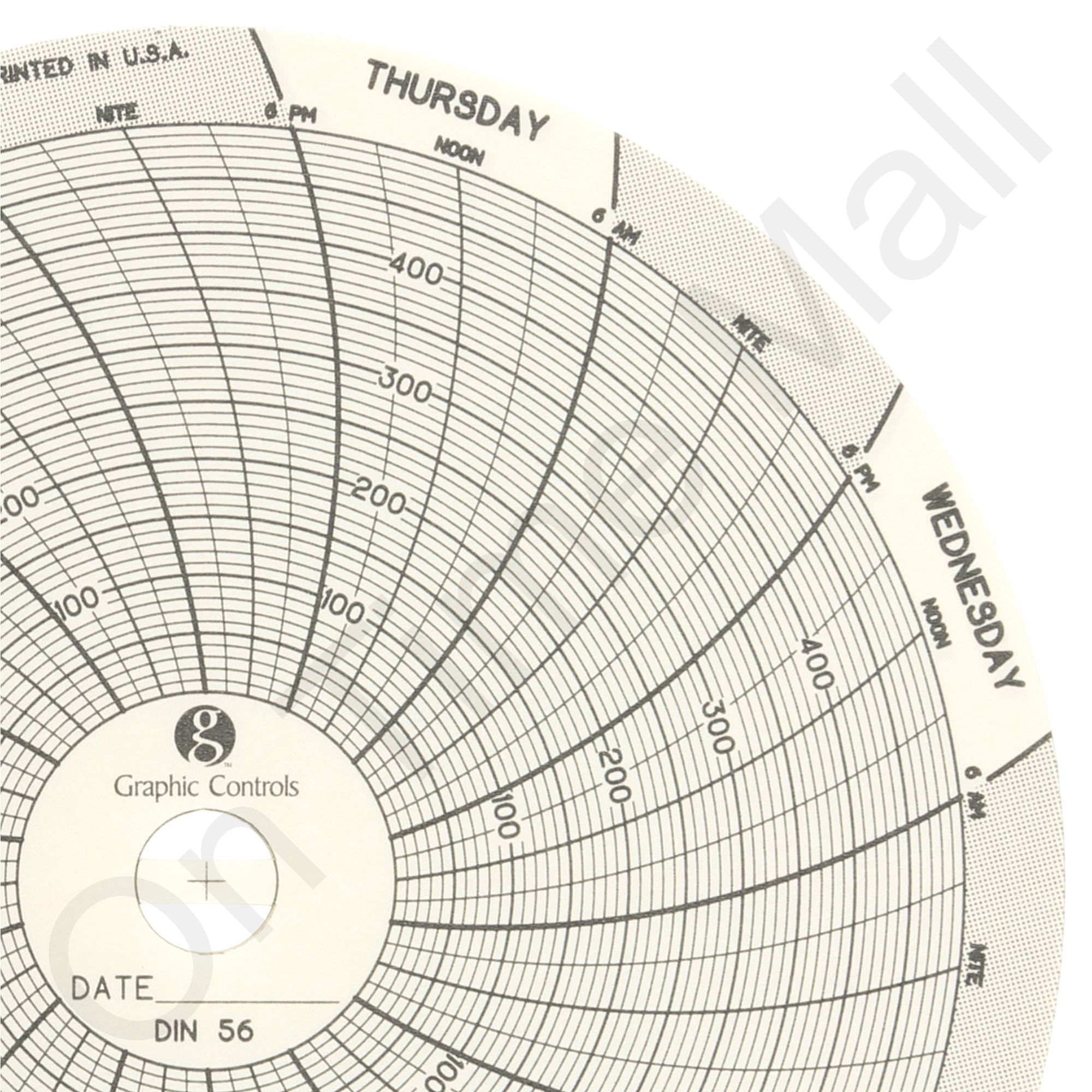 Dickson C056 Circular Charts. Replacement circular charts for Dickson industrial chart recorder. 4 Inch Chart, 0 to 500, 7 day