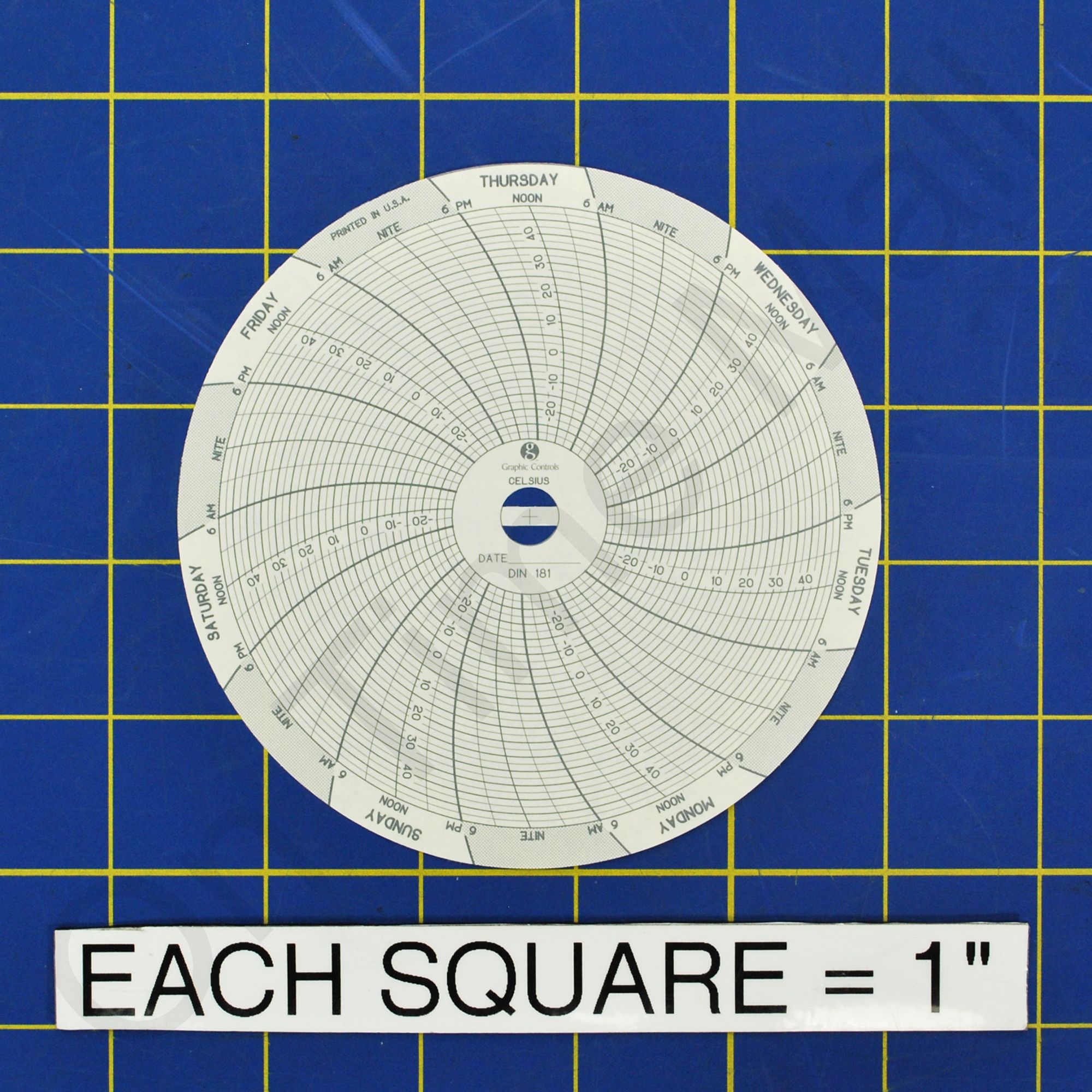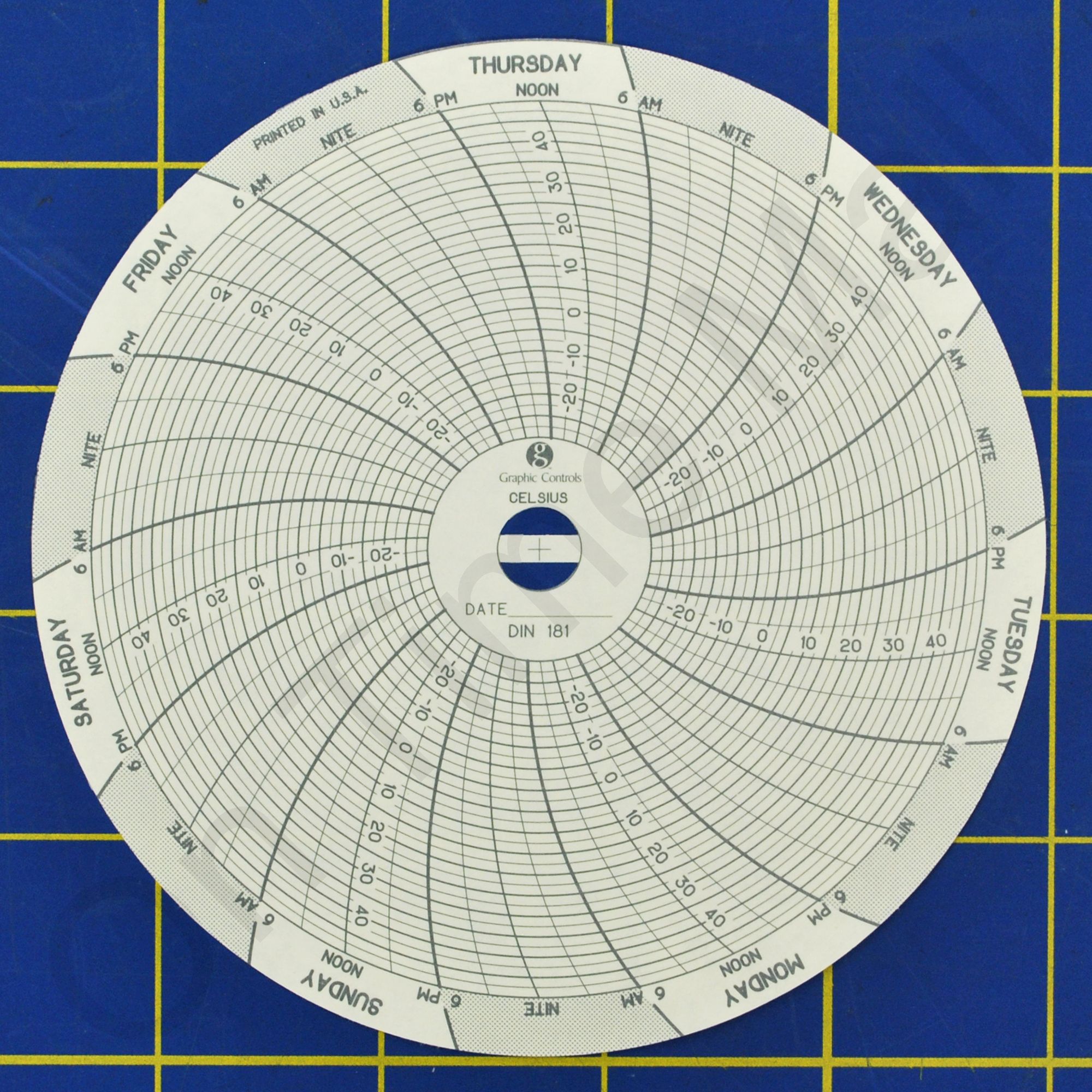 Dickson C181 Circular Charts. Replacement circular charts for Dickson industrial chart recorder. 4 Inch Chart, -30 to +50°C, 7 Day. Also known as part 0095958, 181 and 0095958.