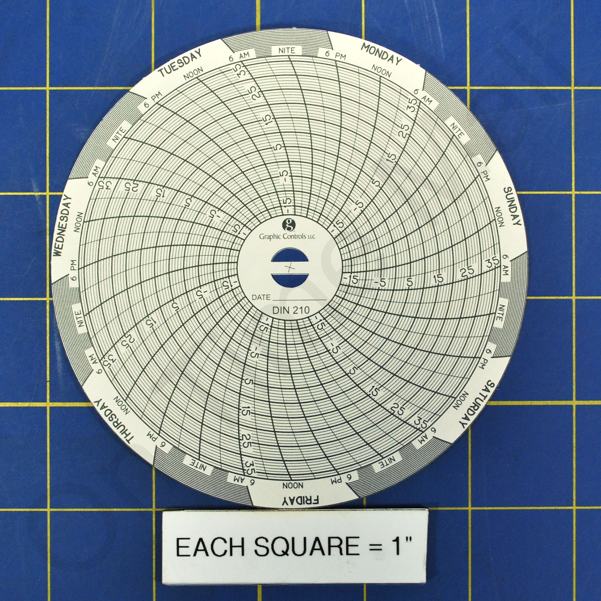 Dickson C210 Circular Charts. Replacement circular charts for Dickson industrial chart recorder. 4 Inch Chart, -18 to +37°C, 7 Day