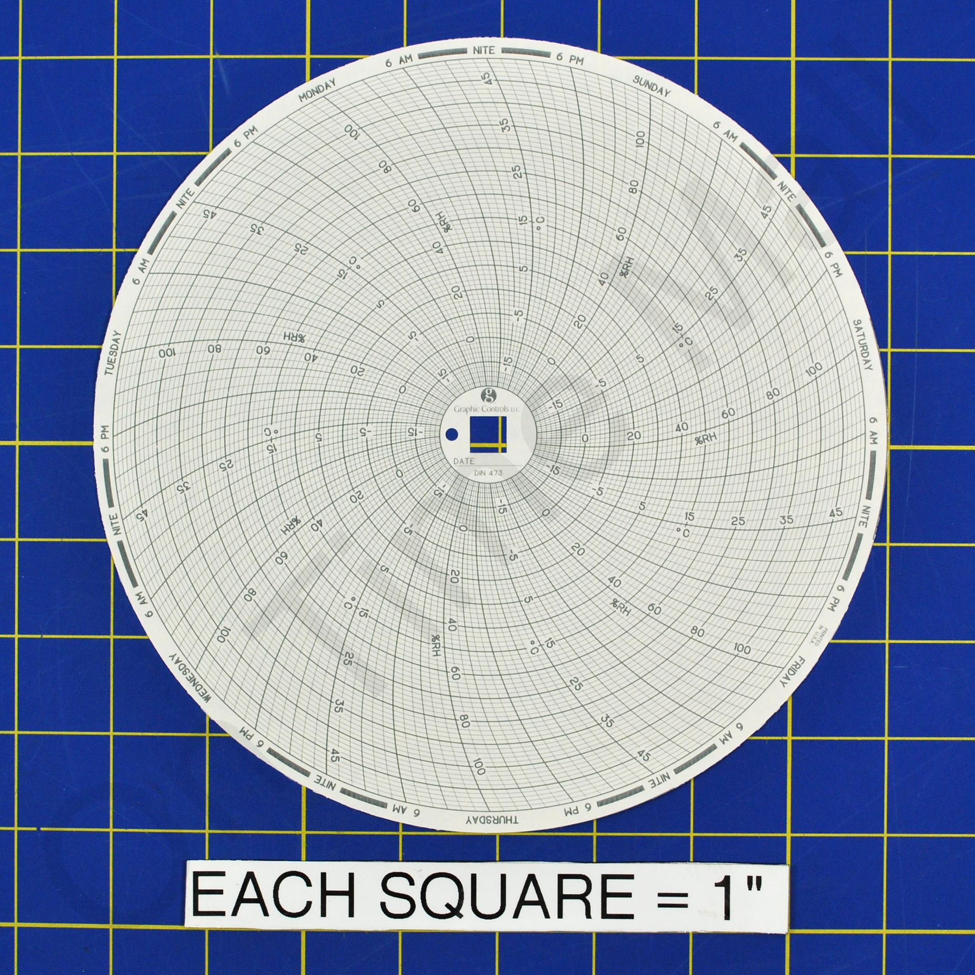 Dickson C473 Circular Charts. Replacement circular charts for Dickson industrial chart recorder. 8 Inch Chart, -20 to +50C, 7 Day (0 to 100 RH) Also known as 0094978, 473 WITH PILOT HOLE and C473