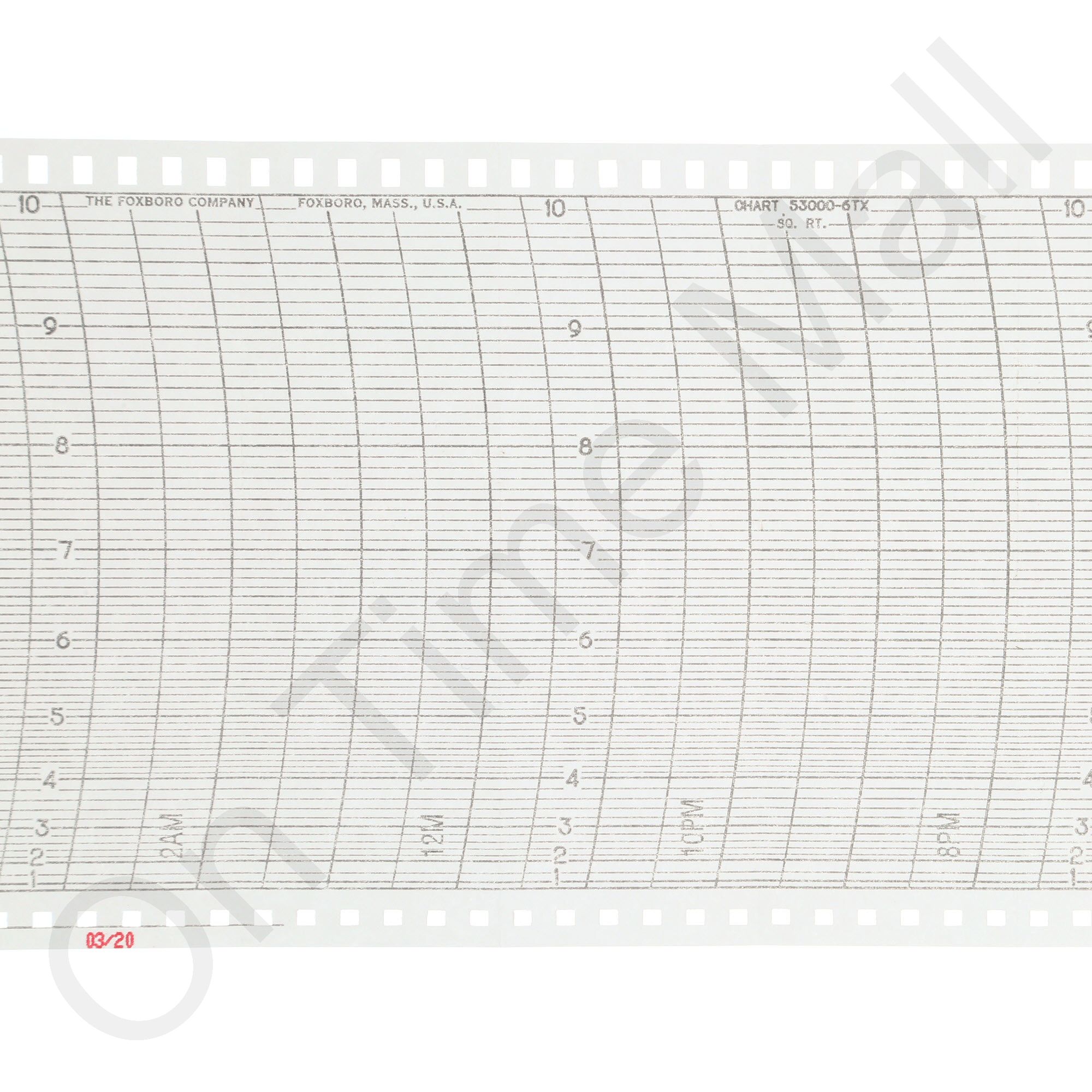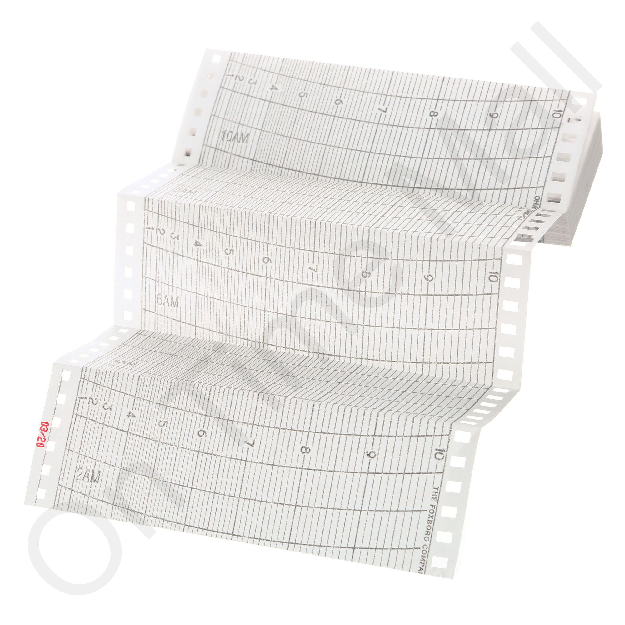 Foxboro 53000-6TX Folding Chart Paper. Single pack of replacement folding fanfold chart paper for Foxboro chart recorder. Also known as 0015276, 0103894, 53000-6TX, 53000-6TX FXF, 53000-6TX FXF, and 53000-XTX.