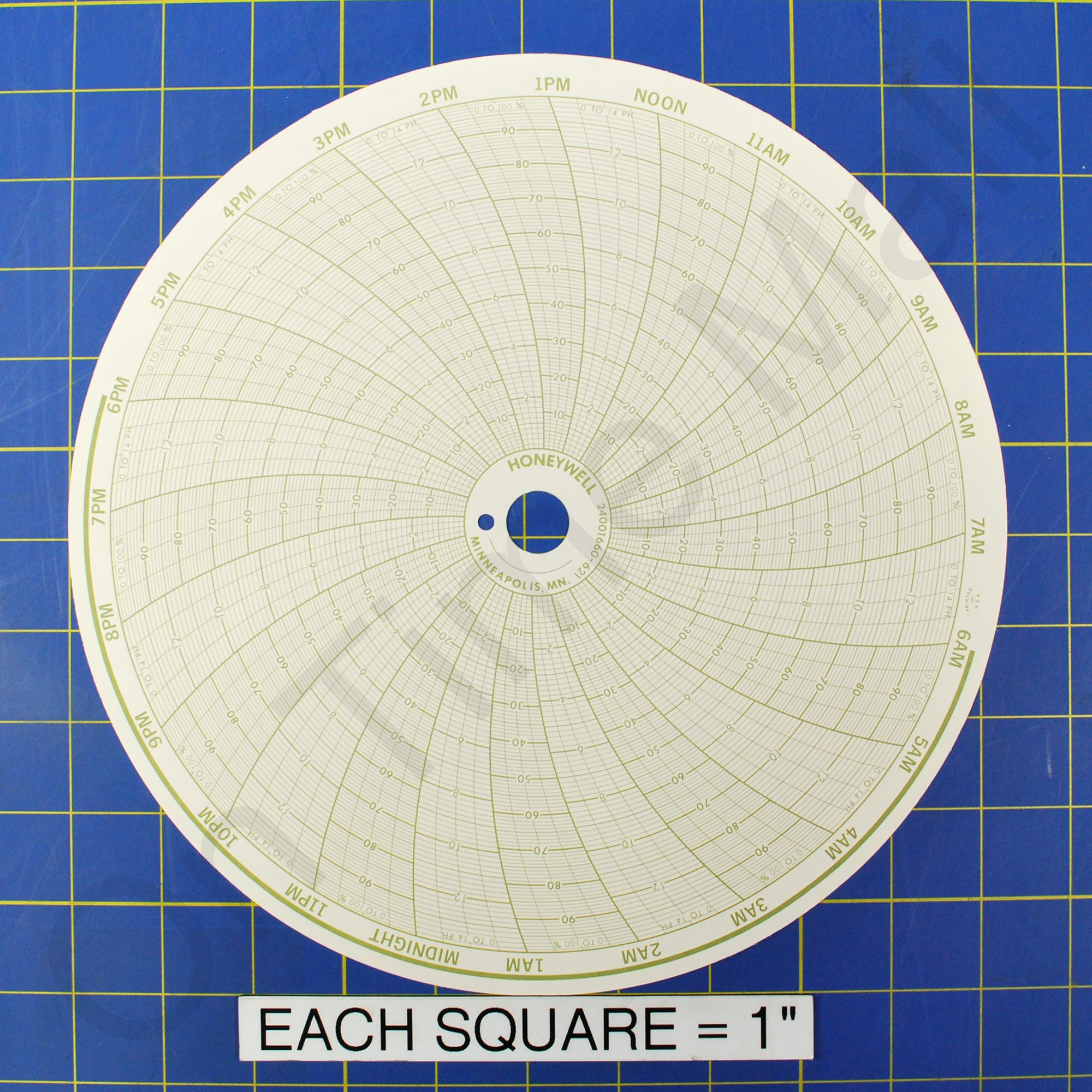 Replacement 10 inch round circular charts for Honeywell industrial chart recorder. Package contains 100 circular charts.