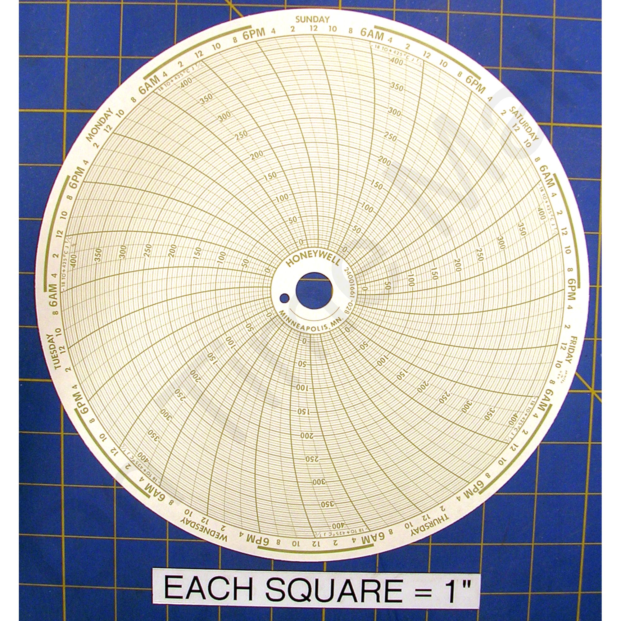 Replacement 10 inch round circular charts for Honeywell industrial chart recorder. Package contains 100 circular charts.