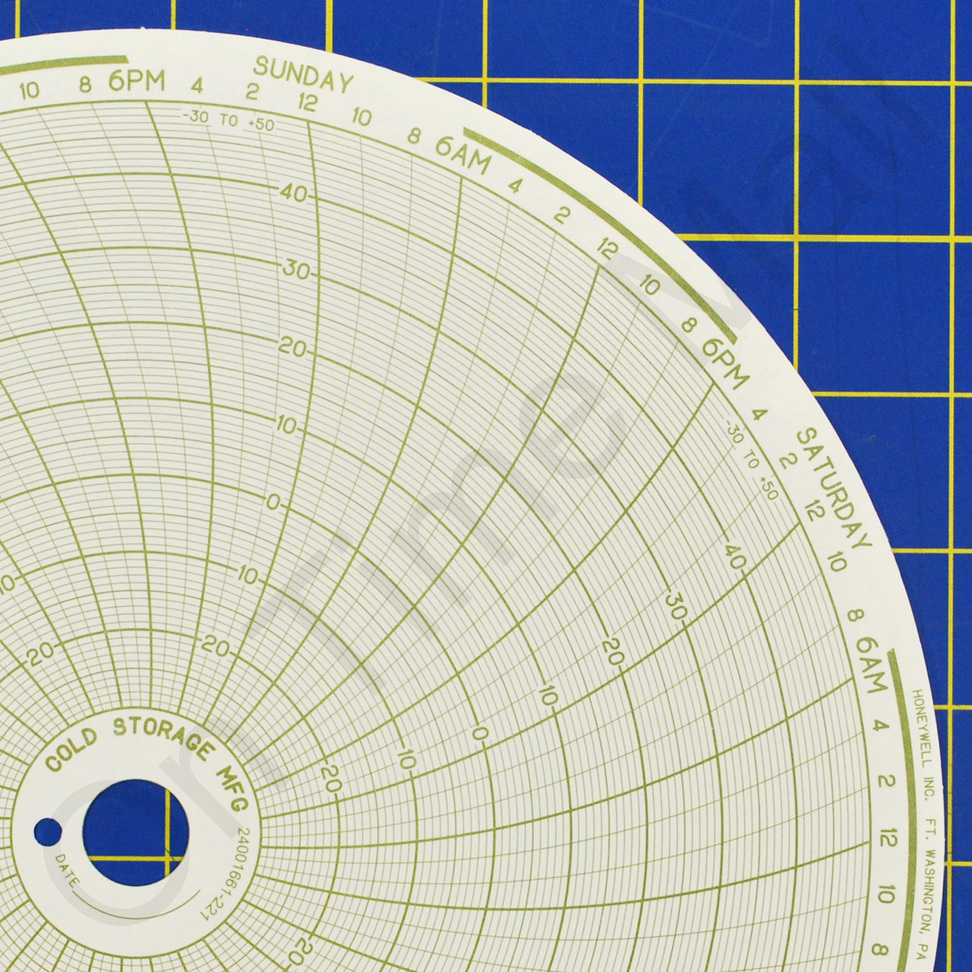 Replacement 10 round circular charts for Honeywell industrial chart recorder. Package contains 100 circular charts. Range of -30 TO +50 on a 7 day chart.