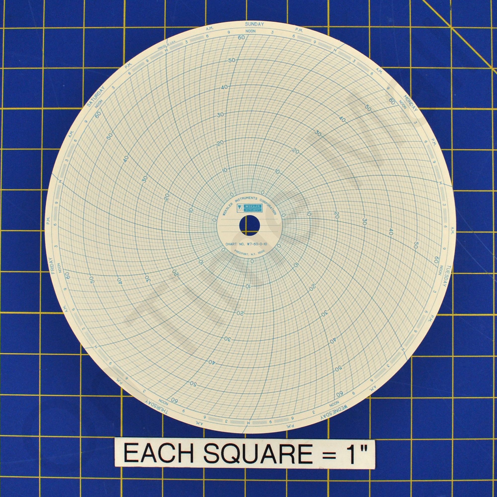 Weksler W7-60-0-10 Circular Charts. Replacement 10 inch round circular charts for Weksler industrial chart recorder. Package contains 100 circular charts.